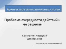 Архитектура вычислительных систем Проблема очередности действий и ее