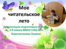 Мое читательское лето Презентацию подготовила ученица 5 б