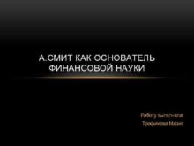 А СМИТ КАК ОСНОВАТЕЛЬ ФИНАНСОВОЙ НАУКИ Работу выполнила