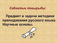 Сабақтың тақырыбы Предмет и задачи методики преподавания русского