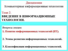 Дисциплина Компьютерные информационные технологии Тема 2 ВВЕДЕНИЕ В