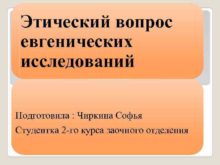 Этический вопрос евгенических исследований Подготовила Чиркина Софья