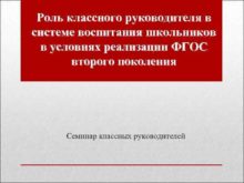 Роль классного руководителя в системе воспитания школьников в