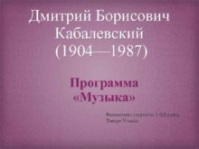 Дмитрий Борисович Кабалевский 1904 1987 Программа Музыка Выполнила