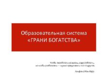 Образовательная система ГРАНИ БОГАТСТВА Чтобы заработать на жизнь