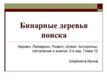 Бинарные деревья поиска Кормен Лейзерсон Ривест Штайн Алгоритмы