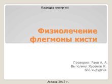 Кафедра хирургии Физиолечение флегмоны кисти Проверил Раев А
