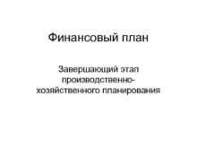 Финансовый план Завершающий этап производственнохозяйственного планирования Финансовый
