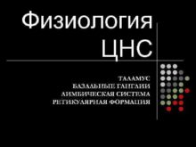 Физиология ЦНС ТАЛАМУС БАЗАЛЬНЫЕ ГАНГЛИИ ЛИМБИЧЕСКАЯ СИСТЕМА РЕТИКУЛЯРНАЯ