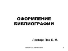 ОФОРМЛЕНИЕ БИБЛИОГРАФИИ Лектор Пак Е М Оформление библиографии