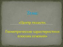 Тема Центр тяжести Геометрические характеристики плоских сечений