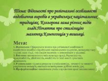 Тема Відомості про регіональні особливості оздоблення виробів в