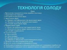ТЕХНОЛОГІЯ СОЛОДУ План 1 Принципова технологічна схема виробництва