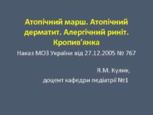 Атопічний марш Атопічний дерматит Алергічний риніт Кропив янка Наказ