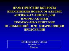 ПРАКТИЧЕСКИЕ ВОПРОСЫ ПРИМЕНЕНИЯ НОВЫХ ОРАЛЬНЫХ АНТИКОАГУЛЯНТОВ ДЛЯ ПРОФИЛАКТИКИ
