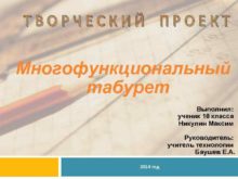 ТВОРЧЕСКИЙ ПРОЕКТ Многофункциональный табурет Выполнил ученик 10 класса