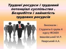 Трудові ресурси і трудовий потенціал суспільства Безробіття і