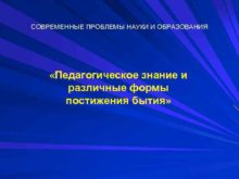 СОВРЕМЕННЫЕ ПРОБЛЕМЫ НАУКИ И ОБРАЗОВАНИЯ Педагогическое знание и