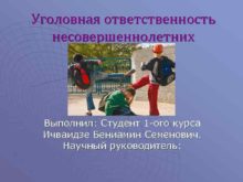 Уголовная ответственность несовершеннолетних Выполнил Студент 1 -ого курса