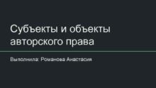 Субъекты и объекты авторского права Выполнила Романова Анастасия