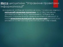 Мета дисципліни Управління проектами інформатизації формування необхідних теоретичних