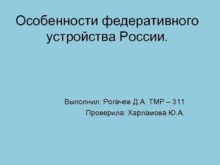 Особенности федеративного устройства России Выполнил Рогачев Д А