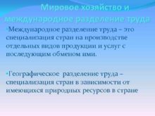Мировое хозяйство и международное разделение труда Международное