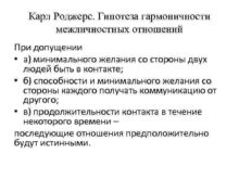 Карл Роджерс Гипотеза гармоничности межличностных отношений При допущении