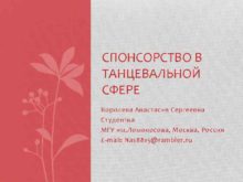 СПОНСОРСТВО В ТАНЦЕВАЛЬНОЙ СФЕРЕ Королева Анастасия Сергеевна Студентка