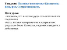 Тақырып Полезные ископаемые Казахстана Виды руд Состав минералов