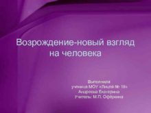 Возрождение-новый взгляд на человека Выполнила ученица МОУ Лицей