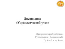 Дисциплина Управленческий учет Над презентацией работали Руководитель —