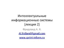 Интеллектуальные информационные системы лекция 2 Фридланд А Я