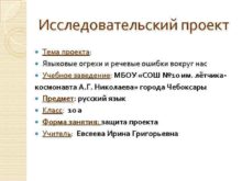 Исследовательский проект Тема проекта Языковые огрехи и речевые