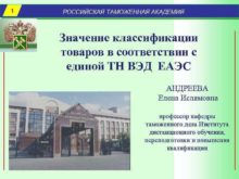 1 РОССИЙСКАЯ ТАМОЖЕННАЯ АКАДЕМИЯ Значение классификации товаров в