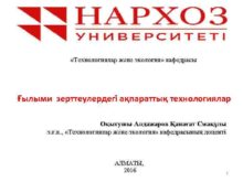 Технологиялар және экология кафедрасы Ғылыми зерттеулердегі ақпараттық