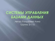 СИСТЕМЫ УПРАВЛЕНИЯ БАЗАМИ ДАННЫХ Автор Рондарева Анна Группа