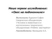 Наше первое исследование Овес на подоконнике Выполнили Буркеня
