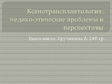 Ксенотрансплантология медико-этические проблемы и перспективы Выполнила Кручинина А