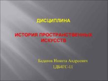 ДИСЦИПЛИНА ИСТОРИЯ ПРОСТРАНСТВЕННЫХ ИСКУССТВ Баданов Никита Андреевич 1