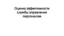 Оценка эффективности службы управления персоналом Оценка эффективности