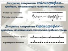 Две кривые начерченные сейсмографом прибором записывающим колебания земной