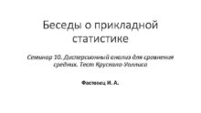 Беседы о прикладной статистике Семинар 10 Дисперсионный анализ