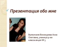 Презентация обо мне Выполнила Винокурова Анна Олеговна ученица