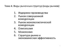 Тема 4 Виды рыночных структур виды рынков 1
