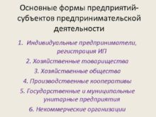 Основные формы предприятийсубъектов предпринимательской деятельности 1 Индивидуальные предприниматели