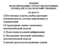 ЛЕКЦИЯ МОДЕЛИРОВАНИЕ СТРУКТУРЫ ПОСЕВНЫХ ПЛОЩАДЕЙ СЕЛЬСКОХОЗЯЙСТВЕННЫХ КУЛЬТУР 1