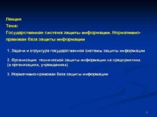Лекция Тема Государственная система защиты информации Нормативно правовая