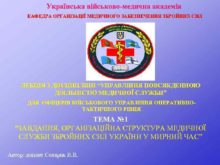Українська військово-медична академія КАФЕДРА ОРГАНІЗАЦІЇ МЕДИЧНОГО ЗАБЕЗПЕЧЕННЯ ЗБРОЙНИХ