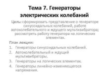 Тема 7 Генераторы электрических колебаний Цель сформировать представление